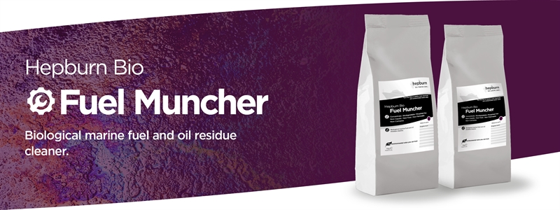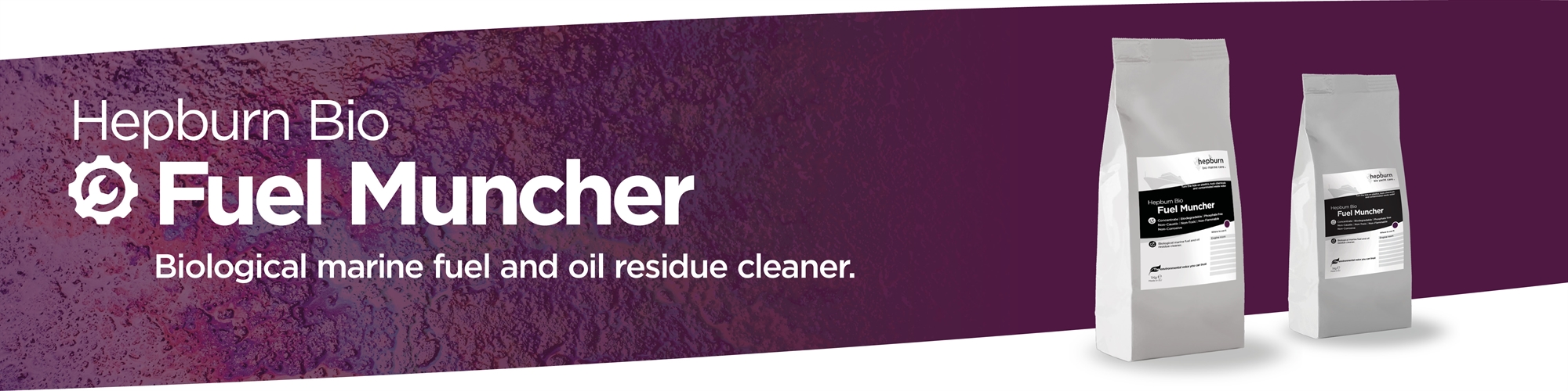 Hepburn Fuel Muncher is a biological product that is safe and easy to use. It will clean tank tops, bilges and other forms of wastewater which are contaminated with diesel or fuel oil. It will bio-degrade contaminated fuel or wastewater in places which are hard to reach, quickly and cost-effectively, eliminating the need for costly manual cleaning, pumping out and disposal to land. A free-flowing powder, which is not harmful to marine life and is salt water tolerant. There is no risk to Rubber, PVC or Fibreglass. Compatible with OWS (Oily Water Separator).